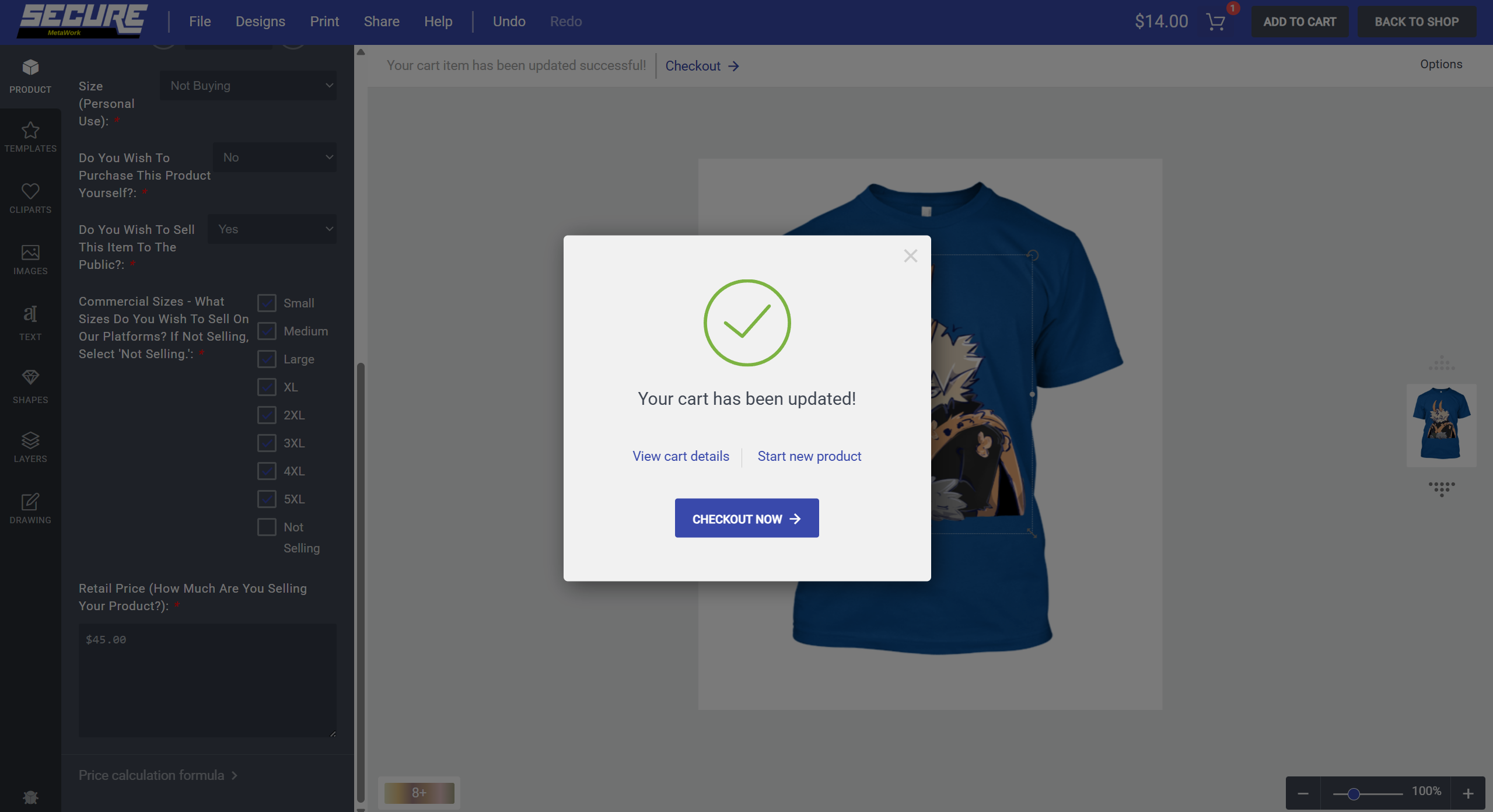 Submit your product right from the design canvas! Answer some basic sales questions and name your selling price!